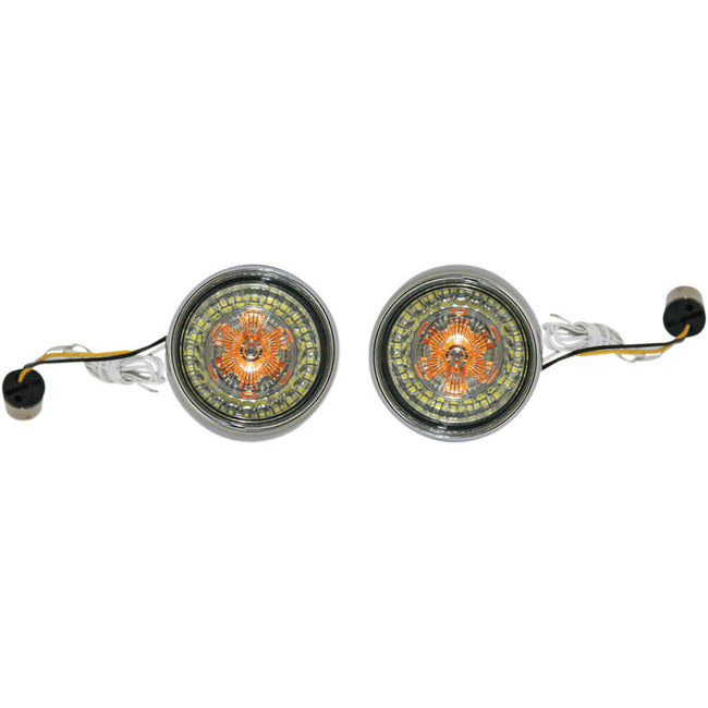 Product Name Turn Signal Assembly Model Bullet Bezel Housing/Stem Color Chrome Lens Color Smoke LED/Light Color Amber / White Bulb Type LED Fits Bulb Socket 1156 Filament/Function Single Units Pair Riding Style Street