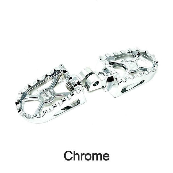 BMX styling with that aggressive no slip grip. Machined from 6061 T-6 billet aluminum with billet 7075 360 degree adjustable clevis with locking set screw and set screw in the end of clevis to adjust the angle of the peg (standard Harley male mount clevis only). Laser engraved logo. Can be used for driver or passenger pegs.
