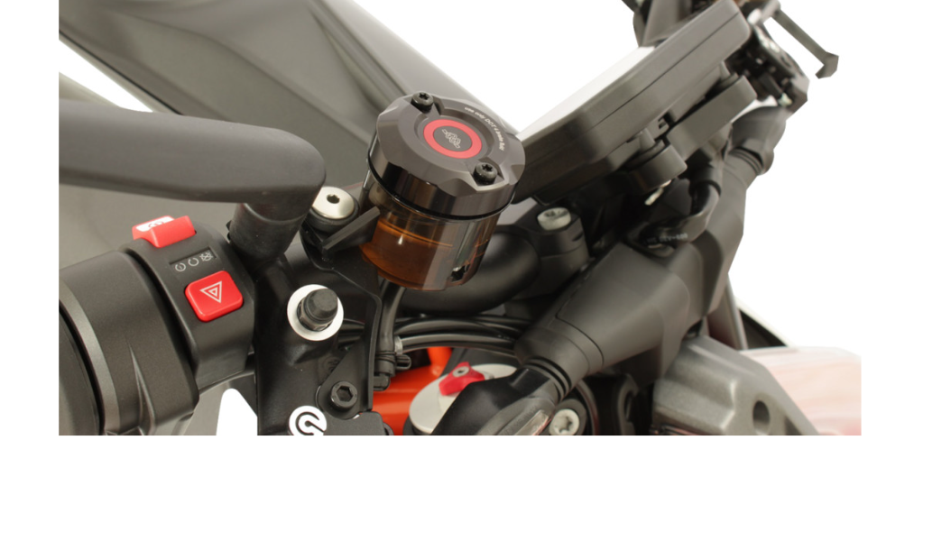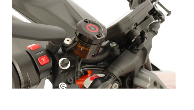 This brake reservoir cover is made of CNC machined aluminum, is quick and easy to install, and gives the bike a much better look.