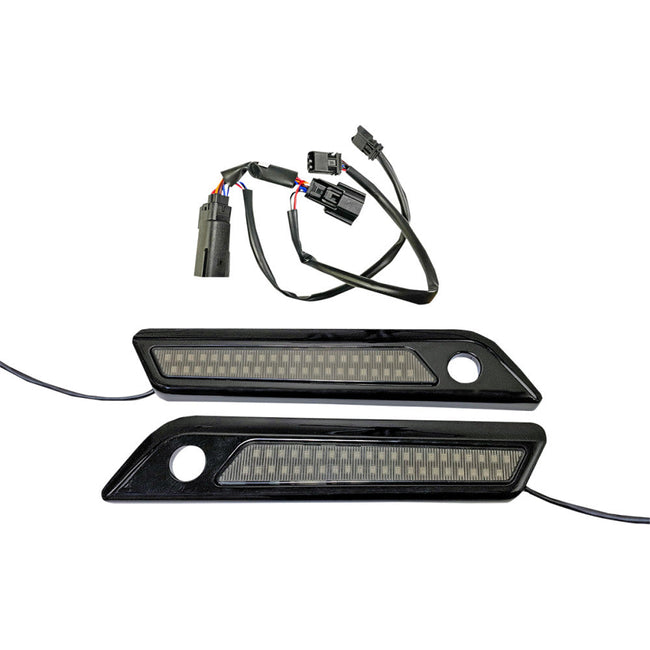 Product Name Accent Light Type Saddlebag Latch For Make Harley Davidson Lens Color Smoke Housing Color Black Bulb/Light Color Amber / Red Bulb Type LED Units Pair Riding Style Street