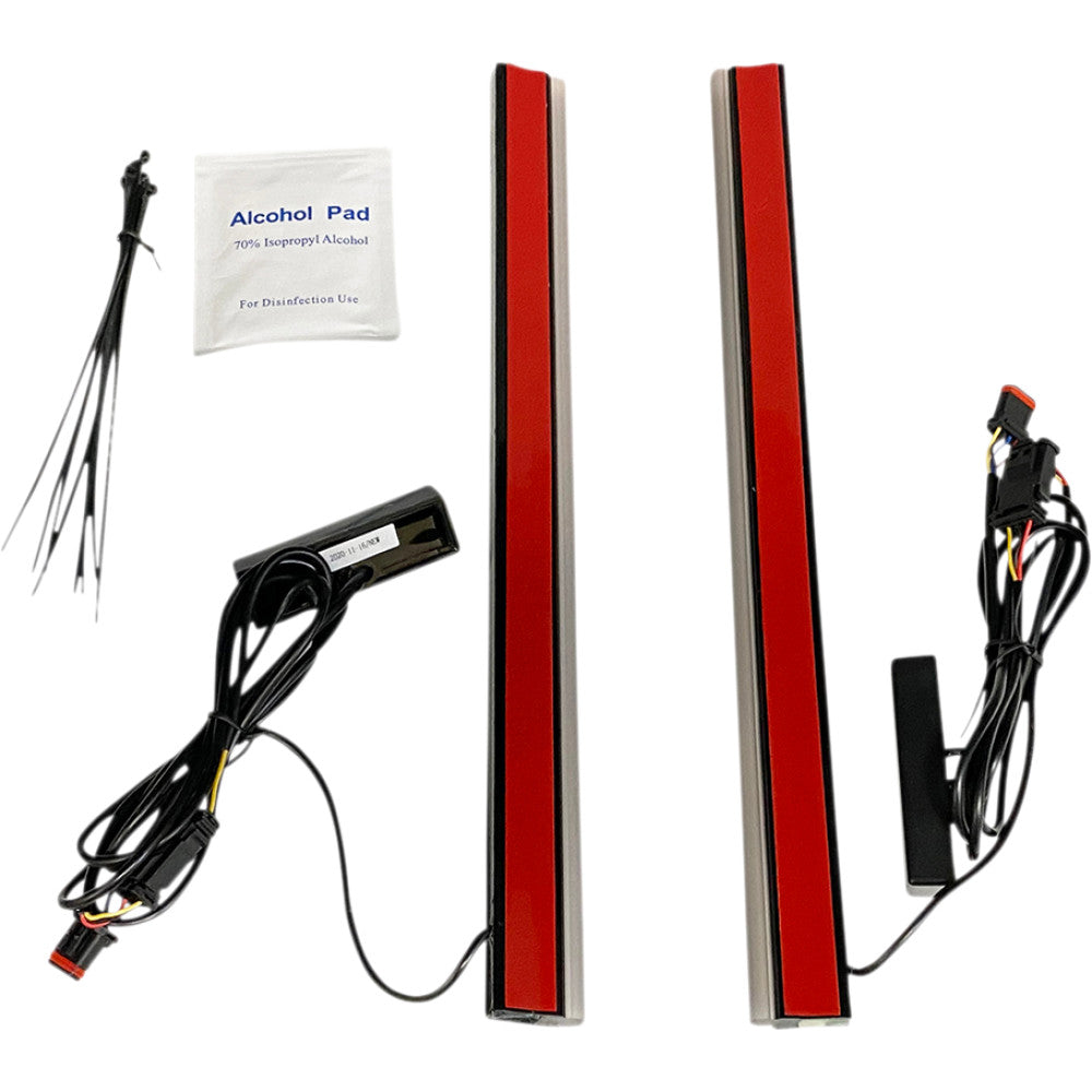 Plasma Rods can mount about anywhere but they work great between your saddlebags and fender/filler panelOffers as dim red running light with high intensity red brake and full contrast amber turn signalWith their smoke lens, Plasma Rods are almost invisible when offUnits are equipped with a plug and play connector and in-line quick disconnect for a simple install when used with one of the Plasma Rods Wiring Adapters (sold separately)Specifications