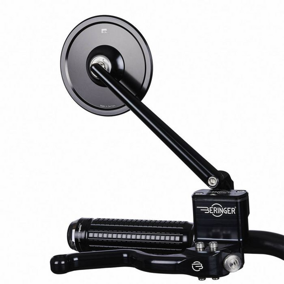 Conventional motorcycle mirrors are rather heavy and sometimes not very elegant. The mirror surface made of glass is a real Achilles verse, can jump out of the frame or break. In the event of a fall, the glass even poses a risk of injury. The aim of the new motogadget mirrors called mo.view is to avoid all these disadvantages by using state-of-the-art production methods. And indeed, the ten different m.view models are completely different from other mirrors. Because their aluminum body, milled from solid material, itself becomes a mirror surface!