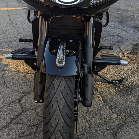 *** May not clear front fender. Need to be install closer the frame for stock suspension and stock fender. We hardly suggest to swap the front fender for a shorty one, or to lift your bike, as it may scratch on certain motorcycle.