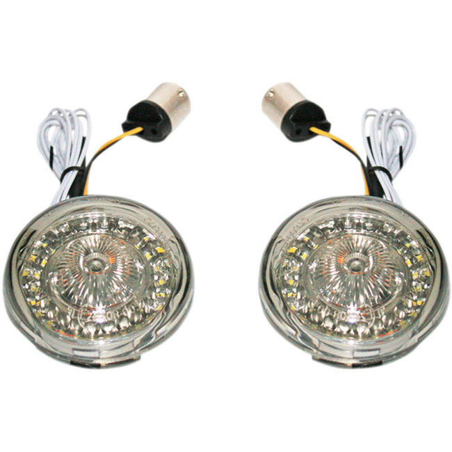 Uses advanced LED technology to maximize performance with a unique reflector technology and automotive grade LEDs composed into a sealed unitThe outer ring of 24 white ProBEAM LEDs showcase a smooth white halo that functions as the running light while 12 center amber LEDs function as the turn signalWhen a turn signal is activated the White LEDs turn completely off for the entire turn signal cycle providing greater visibility to the amber turn signalProBEAM Turn Signals include smoked lenses, are DOT and SAE CompliantPremium Plug and Play LED front turn signalsSpecifications
