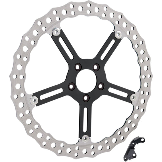 Product Name Brake Rotor Kit Type Two Piece (Floating) Model Big Brake Color/Finish Silver / Black Material 420 High-Carbon Stainless Steel Outside Diameter 15" / 381 mm Shape Contour Mounting Position Front Left Features with Hub Mounted Rotors Units Kit Riding Style Street