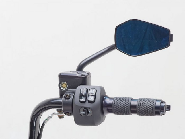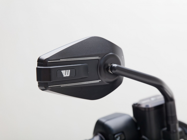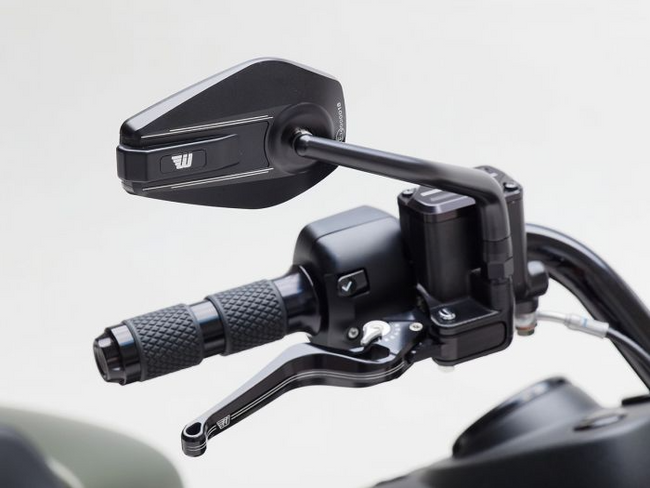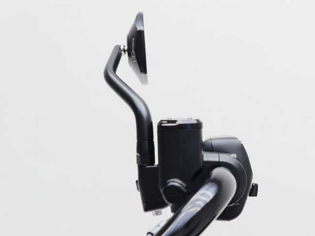 - Integrated in the housing: Exchangeable impact protector made of black plastic. This item prevents the mirror housing against ugly scratches caused by bumping on the house or garage wall when parking the bike, for instance.