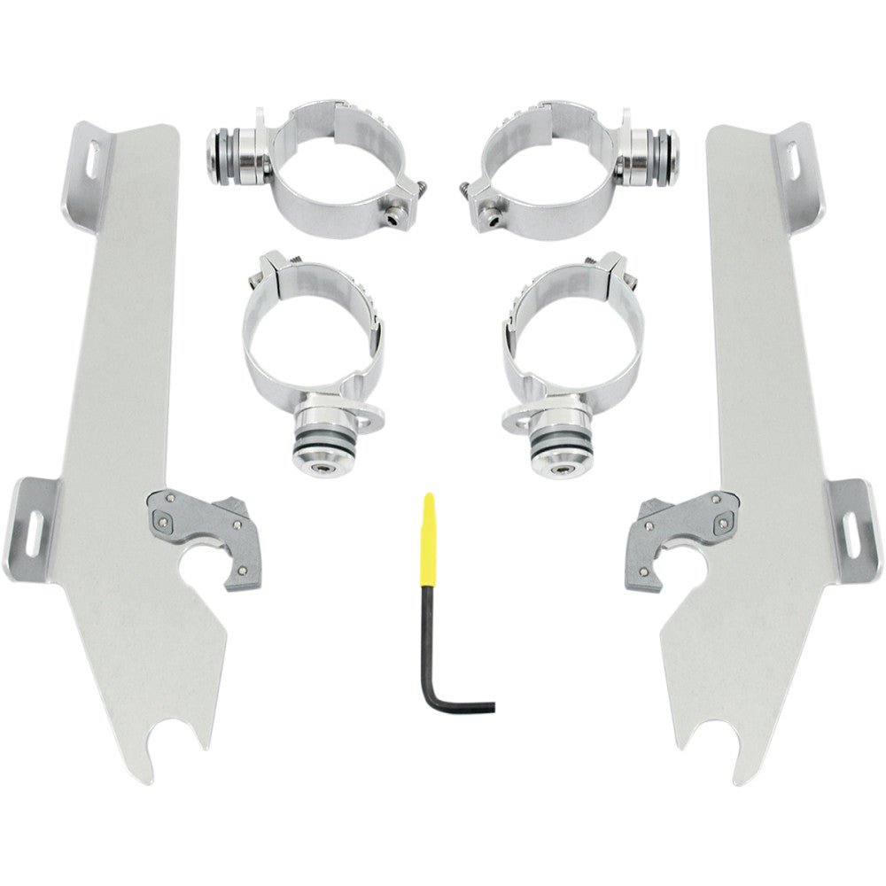 Product Name Mounting Kit Type Windshield Style Complete Model Trigger Lock Compatibility Batwing Fairing Color/Finish Polished Material Aluminum Units Kit Riding Style Street