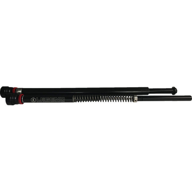 Replaces the asymmetrical stock fork internals with a high-performance twin cartridge setDesigned to be used with stock diameter front wheelsEasy installationIncludes two mono-tube, dual chambered damper cartridgesPerformance spring rateMachined 303 Stainless threaded pre-load adjusterInternal linear spring guide and polyurethane bump stop are unique to the Legend Axeo43 systemRide quality is smooth and controlledImproves stability, cornering, and tractionEliminates front-end dive during aggressive braking and maneuveringFirm feel for high-speed sweeping turnsEliminates bottoming out on large bumps or potholesReduces dragging floorboards and pegsDesigned for optimum performance with Legend rear suspensionsMade by hand in Sturgis, SD USAP65 WARNING: Cancer and Reproductive HarmSpecifications