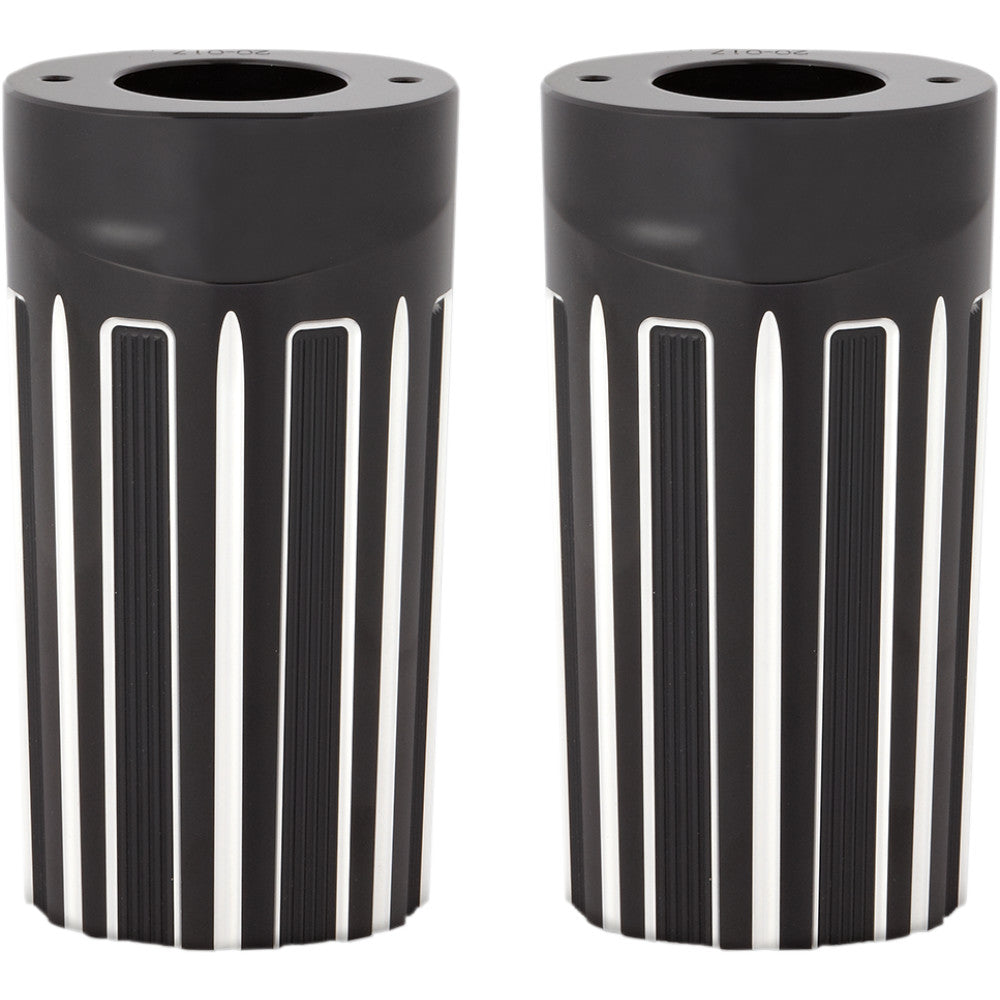 Product Name Fork Boot Cover Type Standard Style 10 Gauge Color/Finish Black / Silver / Anodized Material Billet Aluminum Units Pair Riding Style Street