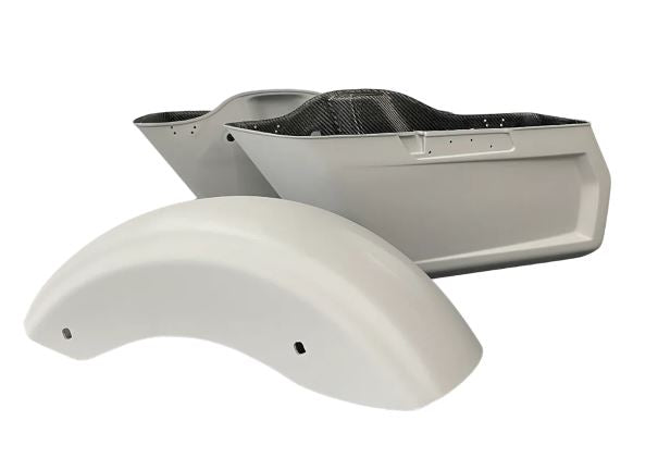 Hofmann Designs Kit de bolsas picadas imprimadas y guardabarros trasero para Harley Touring