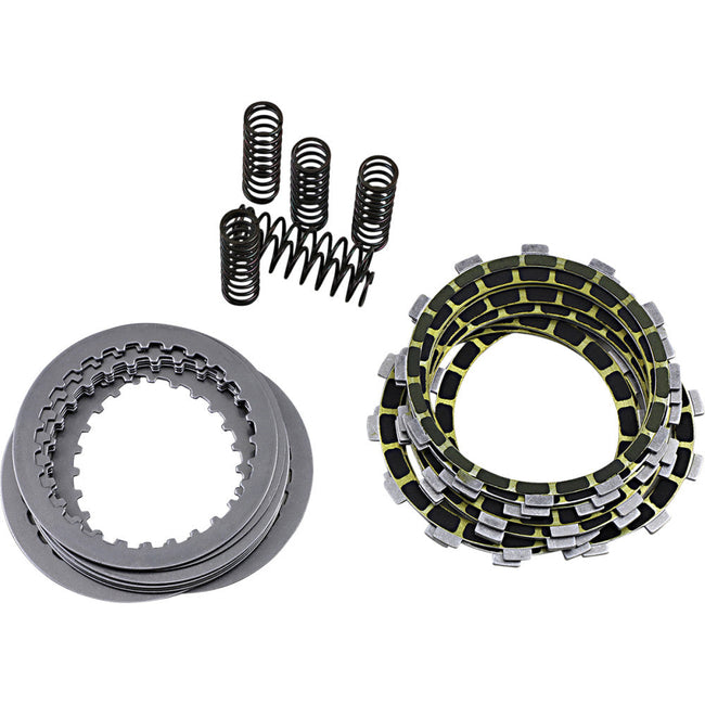 Kit includes proper number and thickness of carbon fiber friction plates, steel plates and springs.