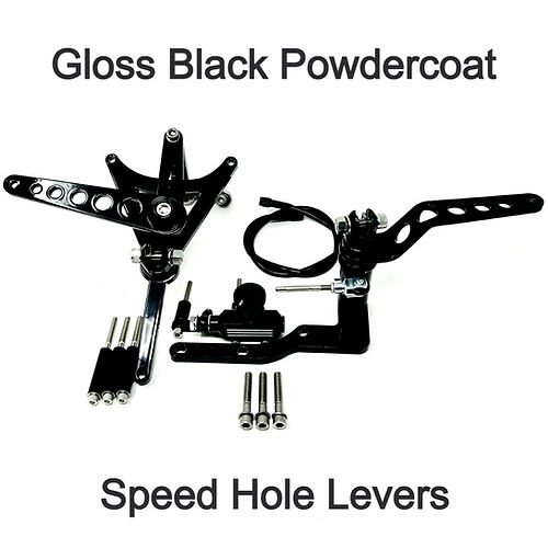 Controles centrales DMR para softails de doble leva que vienen con transmisiones de fábrica de 6 velocidades. Estos están cortados con láser CNC y doblados en acero de gran calibre. Perfecto para el ciclista más agresivo que desea un mejor control al tener los pies debajo, en comparación con los controles de fábrica que colocan los pies al frente. Vienen con controles laterales derecho e izquierdo y todo el hardware, incluidos pernos de montaje, varillaje de cambio, combinación de cilindro maestro/depósito de 14 mm de diámetro, línea de freno, accesorios de freno e interruptor de luz de freno. Las clavijas no están incluidas, se venden por separado. Estos aceptarán cualquier estribera de montaje macho estándar DMR, estriberas de montaje macho estándar estilo Harley, cualquier clavija de pie DMR (para clavijas de freno y palanca de cambios) y cualquier clavija de palanca de cambio estilo Harley (para clavijas de freno y palanca de cambios). Disponible en acero en bruto que usted mismo recubre o en numerosos acabados con recubrimiento en polvo. Estos no funcionarán con sistemas de escape donde el tubo de dirección trasero desciende entre el motor y las transmisiones. Es posible que sean necesarios sistemas de escape personalizados o modificaciones al escape existente. Si no está seguro de si su escape funcionará o no, envíenos una foto del escape por correo electrónico e intentaremos ayudarlo a resolverlo.