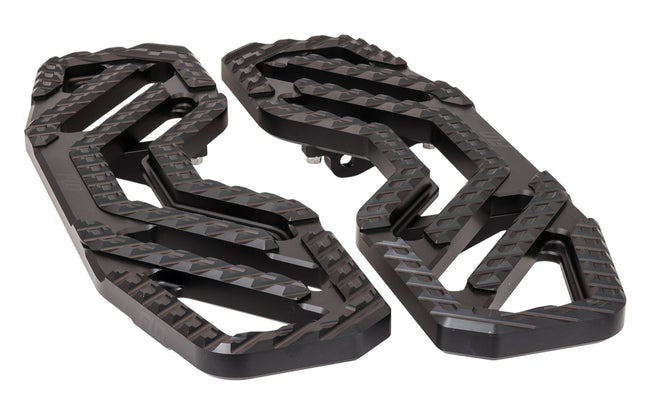 Las tablas del piso Kraus Max Lean Indian están diseñadas para ubicarse más cerca del centro de gravedad del ciclista que las tablas del piso originales. Su diseño agresivo deja al ciclista sintiéndose completamente plantado en el ritmo, mientras que el talón contragolpe y el borde cónico permiten enormes ángulos de inclinación. Debido a que no hay dos soportes idénticos, el ancho y la inclinación son totalmente ajustables, creando las mejores tablas indias personalizadas disponibles.
