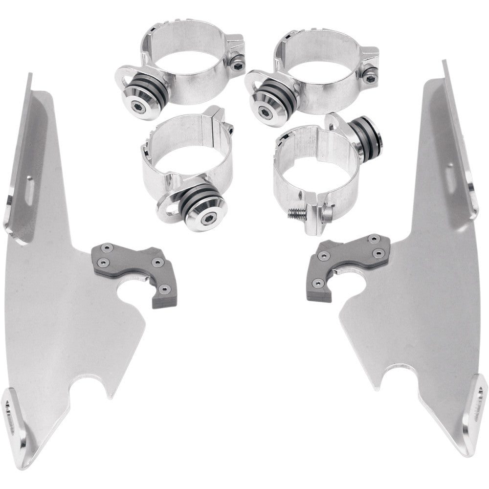 Product Name Mounting Kit Type Adjustable Model Trigger Lock Compatibility Memphis Fats / Memphis Slim / without OEM Light Bar Color/Finish Polished Material Aluminum Units Kit Riding Style Street