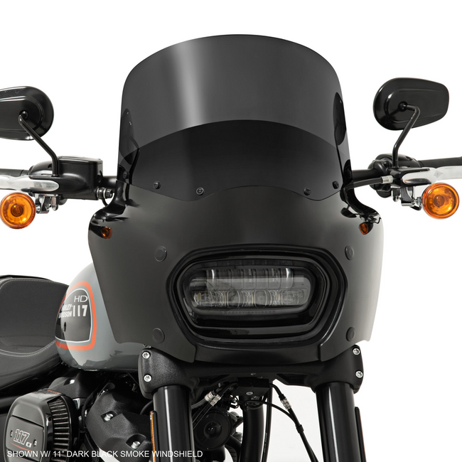 El carenado Road Warrior para FXFB Fat Bob agrega aproximadamente 4" a la altura total del parabrisas.
