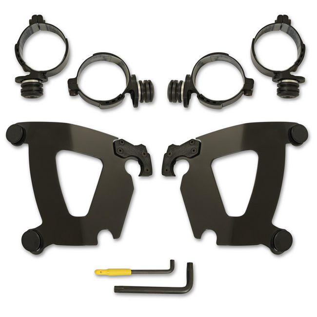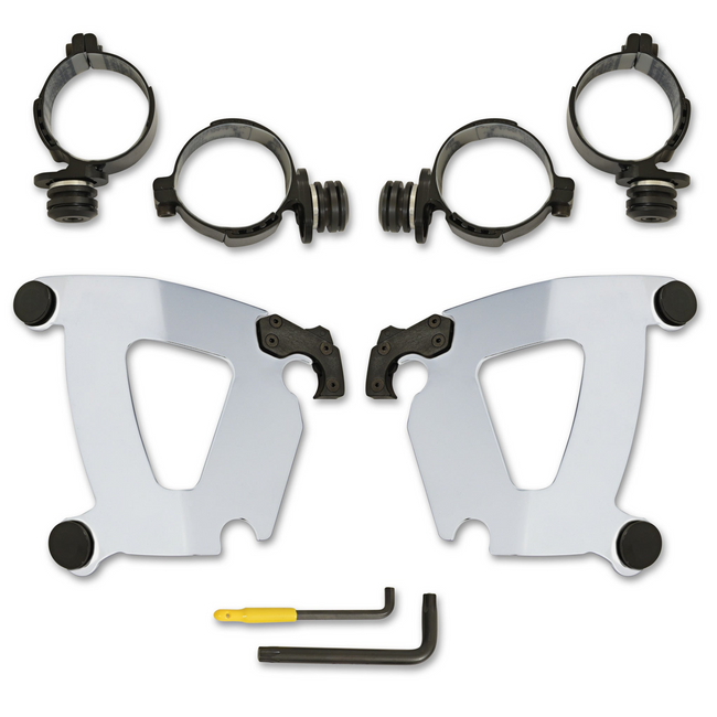 El revolucionario hardware de montaje Trigger-Lock presenta un sistema innovador que le permite quitar rápida y fácilmente sus parabrisas sin el uso de herramientas. Cada kit es específico para cada modelo y se adapta a cada estilo de bicicleta para una instalación realmente sencilla.