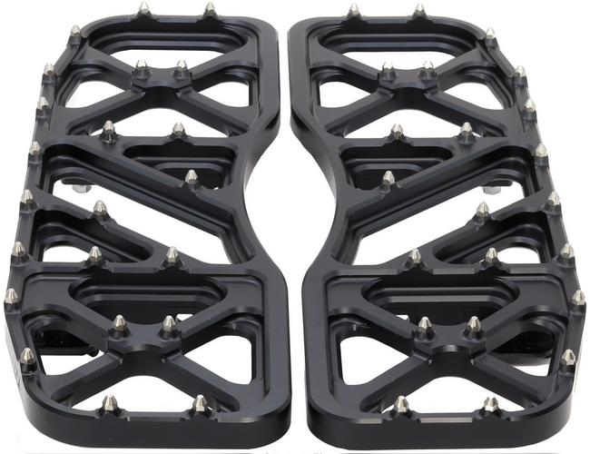 Las tablas del piso Kraus Max Lean Indian están diseñadas para ubicarse más cerca del centro de gravedad del ciclista que las tablas del piso originales. Su diseño agresivo deja al ciclista sintiéndose completamente plantado en el ritmo, mientras que el talón contragolpe y el borde cónico permiten enormes ángulos de inclinación. Debido a que no hay dos soportes idénticos, el ancho y la inclinación son totalmente ajustables, creando las mejores tablas indias personalizadas disponibles.