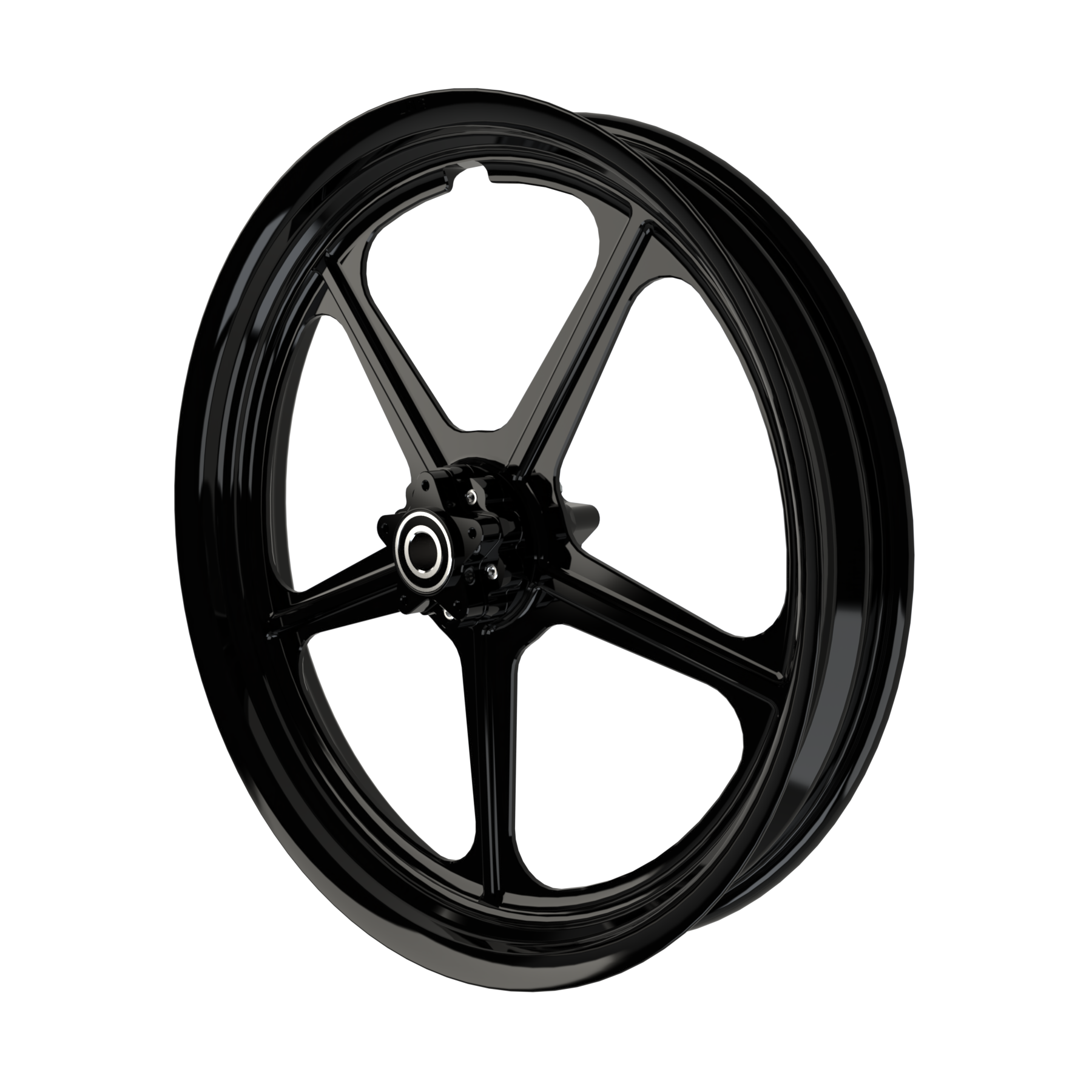 -Vienen en un buje de rotor de 5 pernos estilo Harley estándar para que podamos utilizar estas ruedas con cualquier rotor delantero de 320 mm o 13" fabricado por cualquier fabricante. O vienen en un buje de montaje de radios Challenger estándar en forma de adaptador en el rueda delantera y un patrón de 6 pernos en la parte trasera.