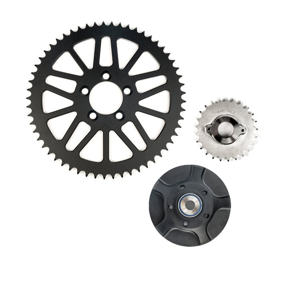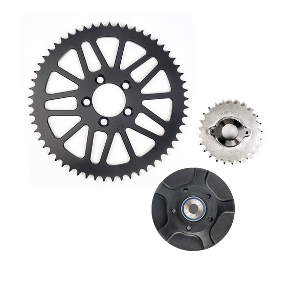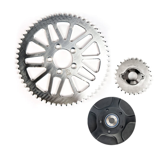***Planeamos incluir opciones adicionales de tamaño de rueda dentada trasera en el futuro. Sin embargo, con modificaciones mínimas, muchas ruedas dentadas traseras no originales pueden funcionar con nuestro adaptador cush-drive. Esto le permite modificar las relaciones de transmisión final por su cuenta. Sin embargo, lo hace bajo su propio riesgo.