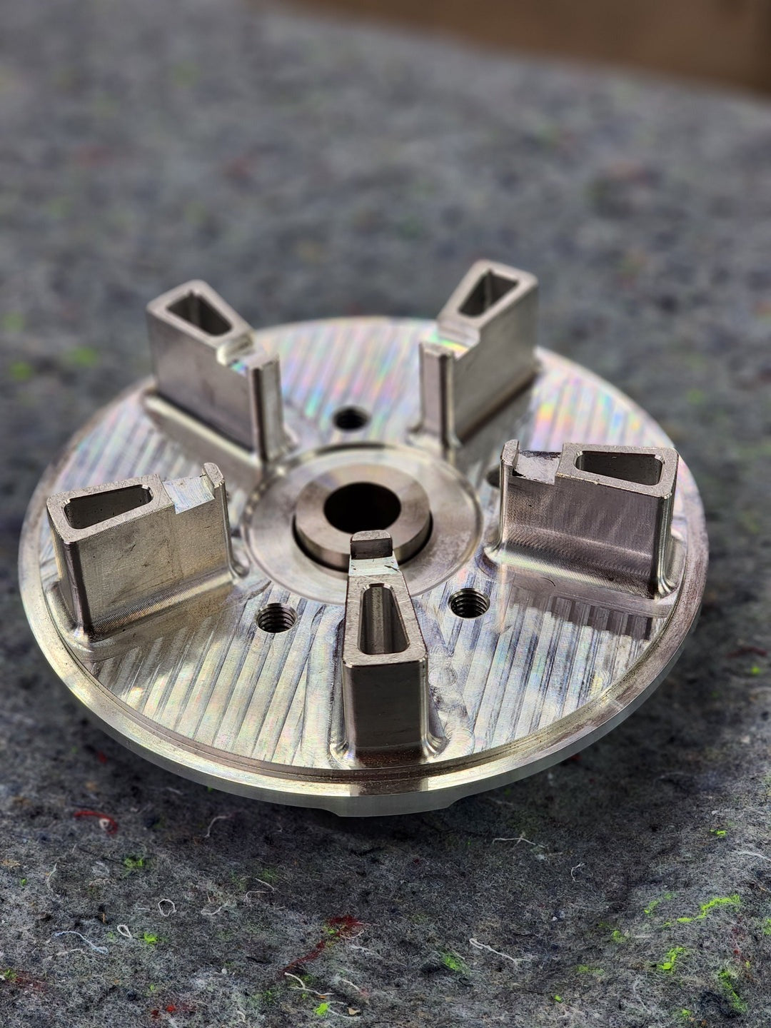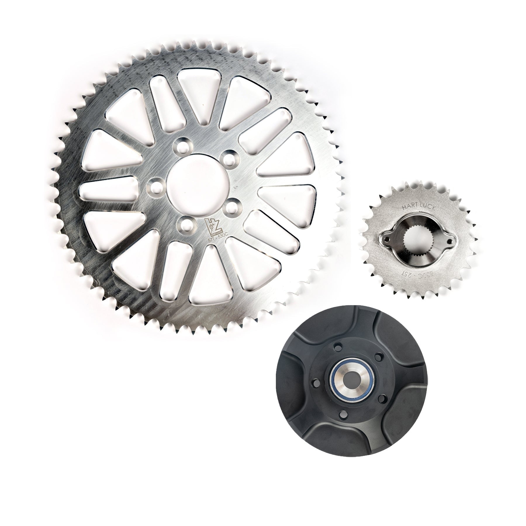 Las ruedas dentadas y los componentes del adaptador Cush de este kit están mecanizados con precisión específicamente para nosotros y están disponibles en algunos acabados.