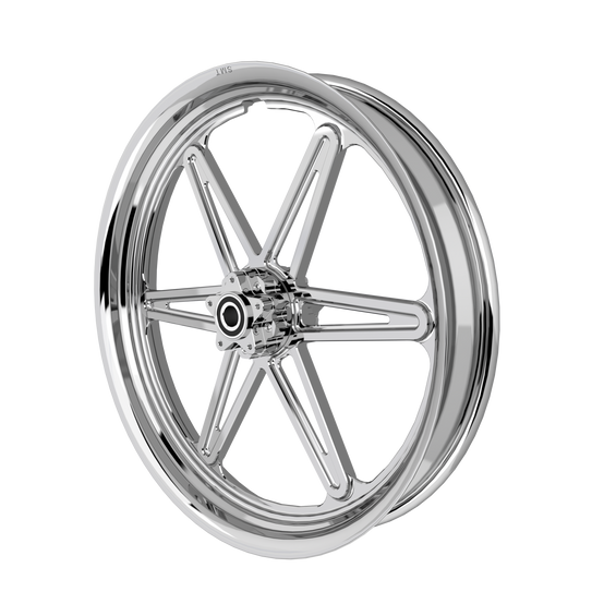 -Vienen en un buje de rotor de 5 pernos estilo Harley estándar para que podamos utilizar estas ruedas con cualquier rotor delantero de 320 mm o 13" fabricado por cualquier fabricante. O vienen en un buje de montaje de radios Challenger estándar en forma de adaptador en el rueda delantera y un patrón de 6 pernos en la parte trasera.