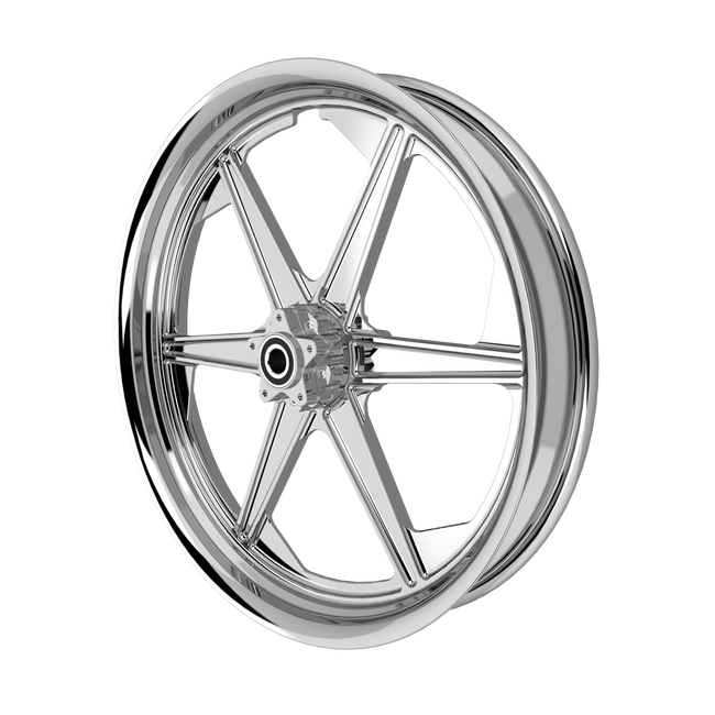 -Vienen en un buje de rotor de 5 pernos estilo Harley estándar para que podamos utilizar estas ruedas con cualquier rotor delantero de 320 mm o 13" fabricado por cualquier fabricante. O vienen en un buje de montaje de radios Challenger estándar en forma de adaptador en el rueda delantera y un patrón de 6 pernos en la parte trasera.