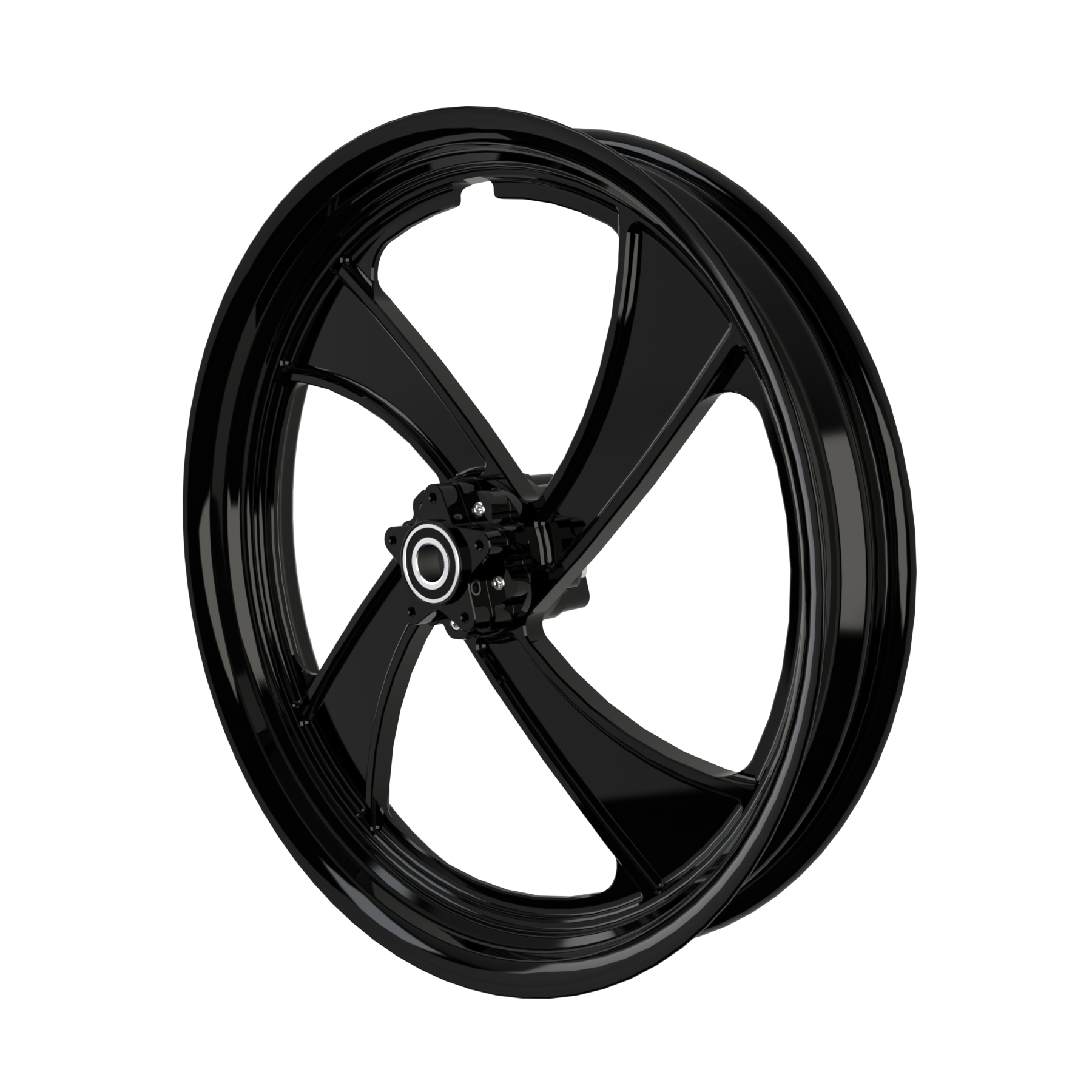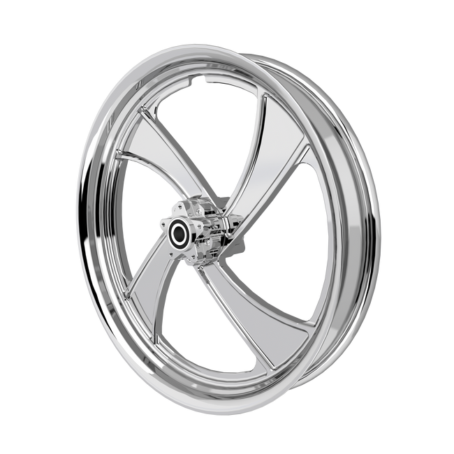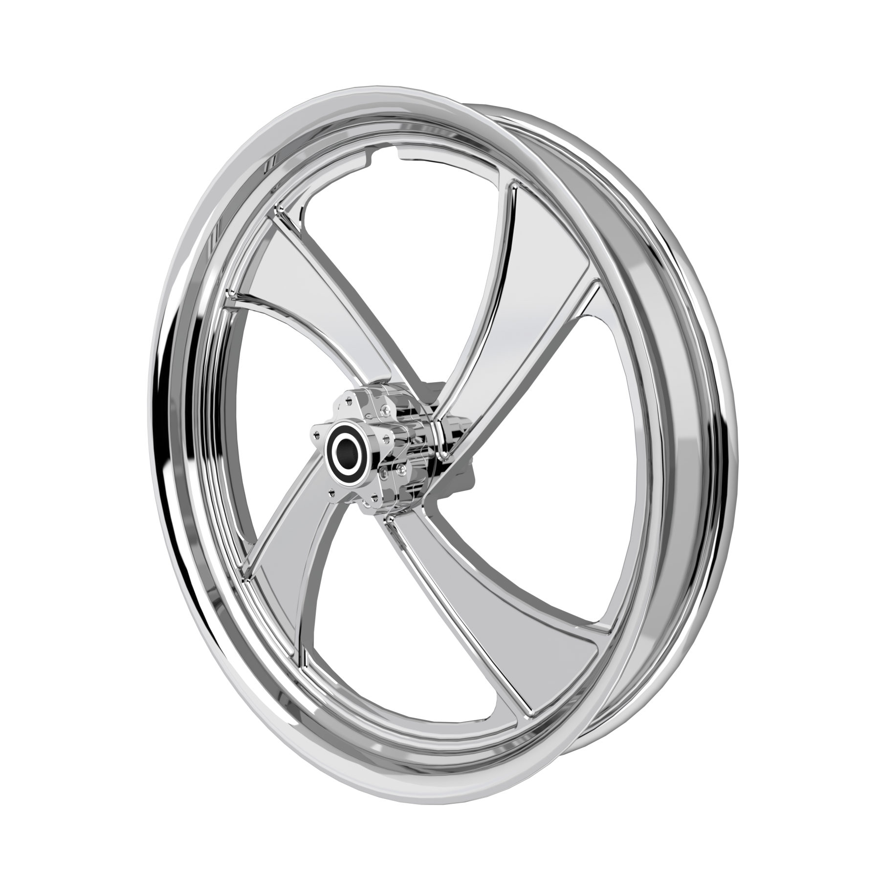 -Vienen en un buje de rotor de 5 pernos estilo Harley estándar para que podamos utilizar estas ruedas con cualquier rotor delantero de 320 mm o 13" fabricado por cualquier fabricante. O vienen en un buje de montaje de radios Challenger estándar en forma de adaptador en el rueda delantera y un patrón de 6 pernos en la parte trasera.