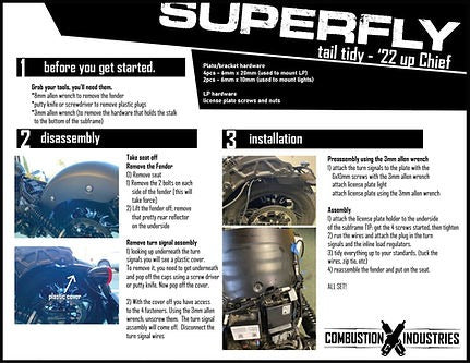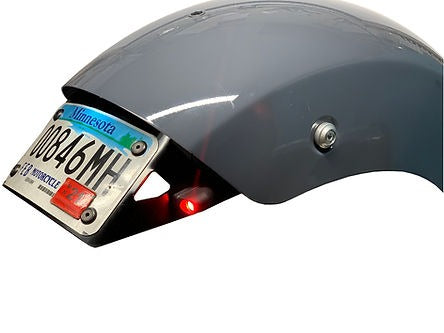 The Superfly tail tidy is designed to integrate and visually clean up the back end of the '22-up Chief. Micron turn signals available separately. Note that the OEM turn signals can be attached to the Superfly License plate holder as well.