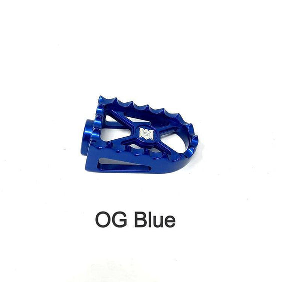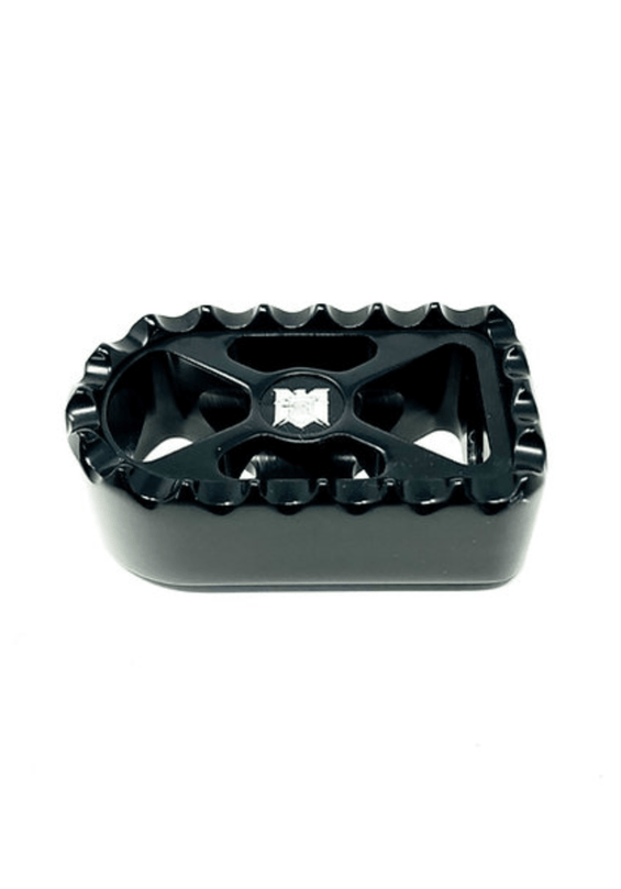 Clavijas de dedo del pie Death Metal Racing Bear Trap. Se puede utilizar como palanca de cambios (izquierda) o freno (derecha). Estilo BMX con ese agarre agresivo antideslizante en la parte superior y un contorno suave en la parte inferior para una sensación suave en el pie y sin dañar el zapato. Mide 2-1/8" por 1-1/4". Mecanizado en aluminio billet. Disponible en crudo, cromado y anodizado negro/azul/rojo/oro miel/oro OG y morado.