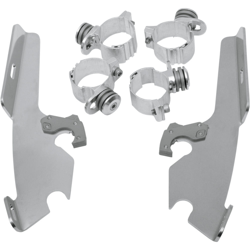 Product Name Mounting Kit Type Windshield Style Complete Model Trigger Lock Compatibility Memphis Fats / Memphis Slim Color/Finish Polished Material Aluminum Units Kit Riding Style Street