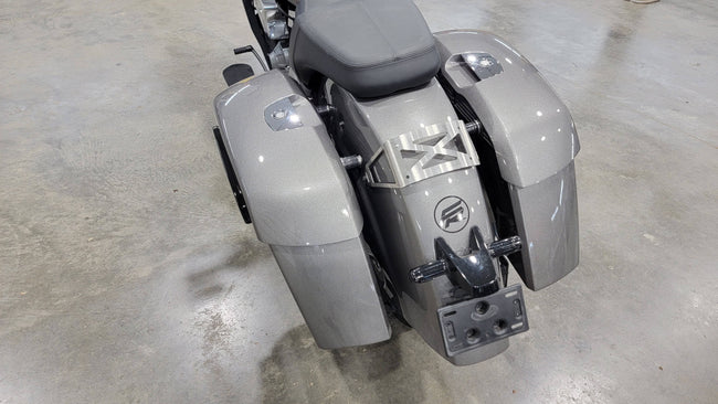 Support de plaque d'immatriculation boulonné en acier inoxydable pour les Challengers indiens. Oui, vous devrez réparer les trous de votre garde-boue à partir de votre support de plaque OEM, mais si vous voulez des options radicales pour votre Indian, en voici encore une autre !