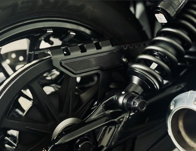 The original plastic belt guard is replaced by our shapely belt guard. The belt guard itself is given a special touch by the CNC-milled cover.