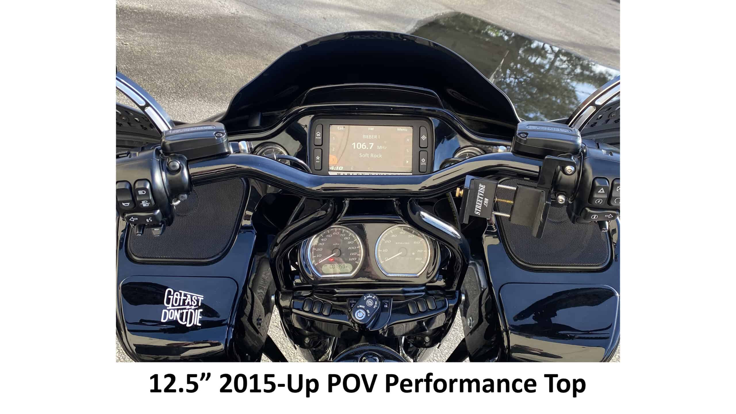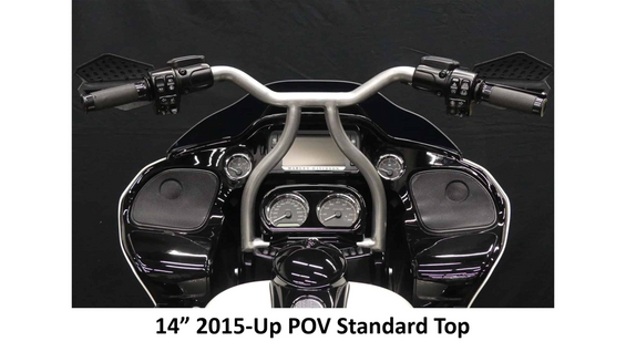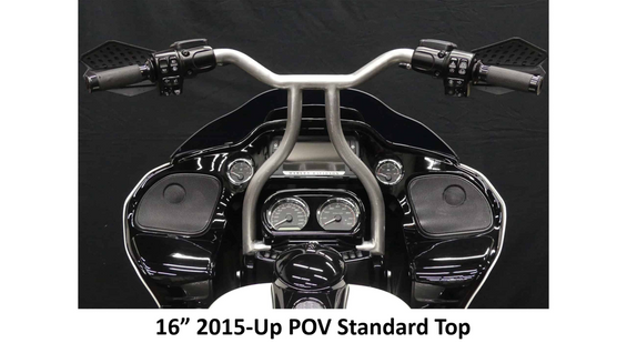 2015-2023 Road Glide POV Twisted Tee-Bars do not obstruct factory gauges like other bars on the market. Mounting in the stock location and allowing adjustability for comfort with the aggressive styling, position, and control of a traditional T-bar. Installation is made easy with no modifications to the fairing or gauge bezels. We add stainless wire, combined with our unique cheater holes, that assist in pulling the stock control wiring through the bar. Available with a choice of our Standard or Performance top bar to suit your style and preferred wrist position.