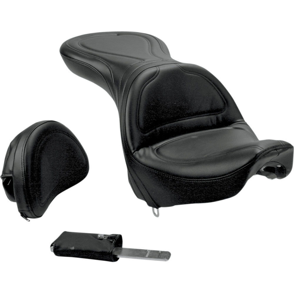 Saddlemen Seat - Explorer - With Backrest - Stitched - Black - Deuce - For: Harley Davidson - Softail