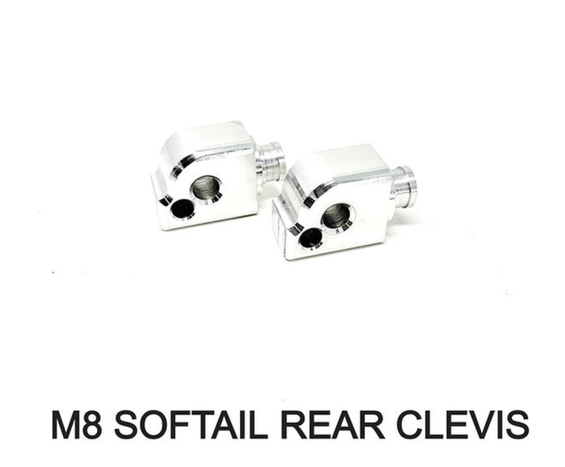 Également disponible pour les nouveaux modèles Milwaukee 8 (M8) Softail. Sélectionnez la chape M8 avant pour le conducteur ou la chape M8 arrière pour le passager sur les Softails à partir de 2018. Notre chape M8 Softail acceptera le ressort d'origine à l'avant et la détente à bille à l'arrière.