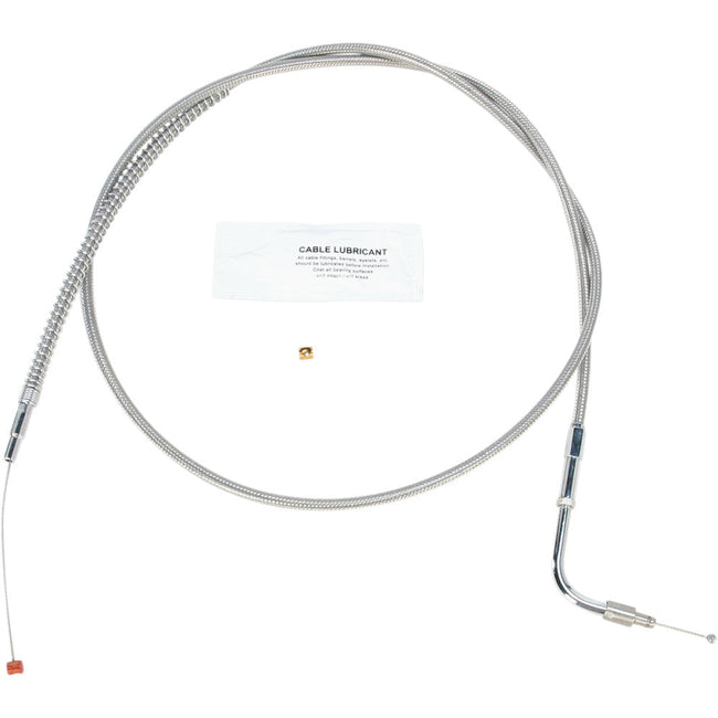 Product Name Cable Type Idle Style Alternate Length Color/Finish Stainless Steel Size +8" Overall Length 50-1/2" Housing Length 50-1/2" Elbow Angle 90 Handlebar Fitting Smooth Cruise Non-Cruise Units Each Riding Style Street Finish Natural Base Color Silver