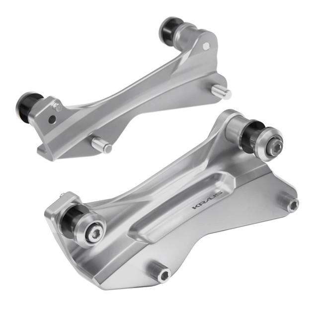 Welcome to the future of performance bagger versatility — the first-ever billet docking hardware engineered specifically for remote reservoir shock setups. Designed to work seamlessly with Öhlins or FOX remote reservoirs. This kit lets you run any Harley-Davidson® or aftermarket detachable accessory without compromise. Whether you're rocking a sissy bar, luggage rack, or Tour-Pak®, this billet performance docking kit gives you clean, solid docking points — built from raw precision and crafted with the aggressive style only Kraus Moto delivers.