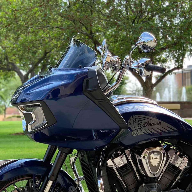Le guidon KlipHanger pour Indian Challenger apporte dans la rue la possibilité de réglage d'un produit éprouvé en course. La combinaison du KlipHanger Knuckle avec la possibilité de réglage d'une barre en U courbée de conception ergonomique permet à chaque cycliste de maximiser son confort.