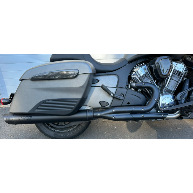 Constructed of Chemically Certified 6061-T6 & 6063 Aircraft Grade Aluminum and loaded with a 304 stainless steel spiral welded perforated baffle assembly + ISW Packing. The long-awaited Challenger Full System from Toce Performance not only offers significant weight savings it also allows the bike to breathe much easier with the 2-1 equal-length headers. Held tight with an engine-mounted capture bracket to ensure no flexing of the exhaust components, and good as factory mounting. Our optional billet subframe assembly and bag support that does not interfere with cages or highway bars makes for the perfect setup. You can order the subframe with or without the left-bag support for a sleek look, and option to run another unit. Our subframe and bag support assemblies are being retrofitted as well, and should be released soon.