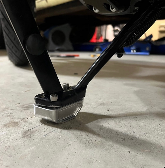 Débarrassez-vous un peu de l'inclinaison du vélo en ajoutant ce bloc au bas de votre béquille. Cette pièce est extrêmement utile avec l'inclinaison supplémentaire que vous avez acquise après la mise à niveau vers des amortisseurs de rechange, surtout si vous êtes allé plus haut à l'avant ou à l'arrière.