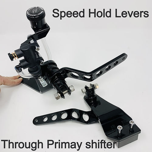 Boosted brad mid controls for Harley fxr, fxrt, fxrp. Could easily be made to work on custom bikes as well. Mounting plates are cnc laser cut and bent from heavy gauge 3/8" steel. Tig welded. The Brembo master cylinder has a 13mm bore and works great with stock fxr or aftermarket 4 piston calipers. Cnc billet reservoir. Super smooth operation with oilite bushings and delrin washers. Shift side is available with or without the shift assembly. Option 1 comes with the footpeg mounting bracket, bracket spacer, footpeg clevis and matching shift lever. Option 2 comes with our over the primary shift lever and arm design for bikes that do not have the stock shift lever assembly. With this option, you will also need a shorter shift linkage than stock. We also offer those or you can make your own, preferably with brass bearing for smoother operation. These controls will work with any of our pegs (sold separately) or any Harley male mount style pegs. Available in a variety of finishes. Bare metal (so you can coat how you like), gloss black Powdercoat, wrinkle black Powdercoat, and chrome. These were designed to clear thunderheaders and similar style 2 in 1 exhaust systems. Due to the limited space on the right side of fxr's and differences in motors, exhaust systems, etc. Be sure to check all clearances.
