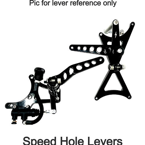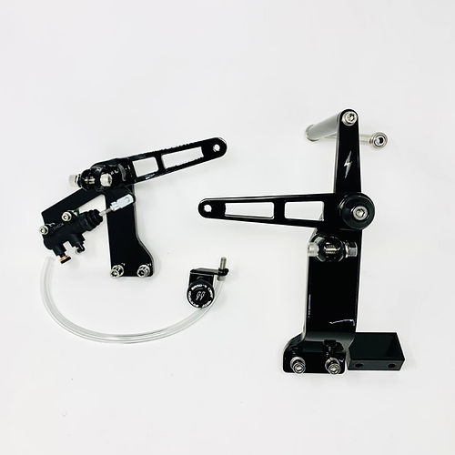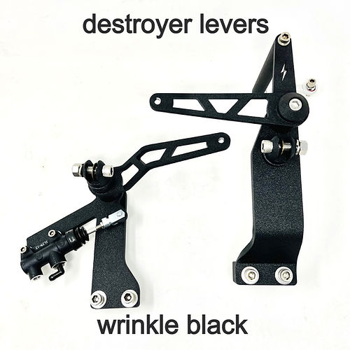 Boosted Brad Dmr Dyna mid controls. Bolts to the factory frame locations. No modifications needed to the primary or frame. 2" higher peg location than stock for more ground clearance for the best lean angle. Made from heavy gauge steel, Cnc laser cut, bent and machined. Great for bikes that didn't come with mid controls from the factory, or for someone wanting a more aggressive look than the factory Mids. Fits best with bikes that have an exhaust where the rear head pipe goes around the front of the cam cover and back, similar to the Bassani road rage 3 pictured. Any questions on exhaust fitment please contact us. We do not guarantee fitment of all exhaust. Some mods may or may not be needed to exhaust. Again call with any questions before ordering! Comes with both left and right sides, mounting hardware, shift linkage, Brembo master cylinder, Cnc billet fluid reservoir, and now includes brake light switch. Super smooth shifting and braking. 3 lever designs available, speed holes (round holes in levers), slotted (pictured on bike), and destroyer (trellis design like our destroyer risers). Available in raw steel (coat yourself), gloss black Powdercoat , texture black Powdercoat , and wrinkle black Powdercoat. Available for all year model dynas, we just don't offer the brake line kits for older model dynas yet. The year option is only for the brake line kit. If you are putting these on an older dyna than what is listed, just select no on the brake line kit. Brake line kit option is $110 extra and includes brake line, banjo fittings, and banjo washers to replace stock brake line and brake light switch. We do not offer line kit for abs models. Pegs not included, sold separately. These fit all twin cam model dynas and evo's but we haven't confirmed all year model evos .