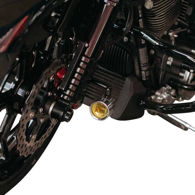 Custom Dynamics Fog Light - Chrome - Yellow Lens - For: Harley Davidson - Dyna