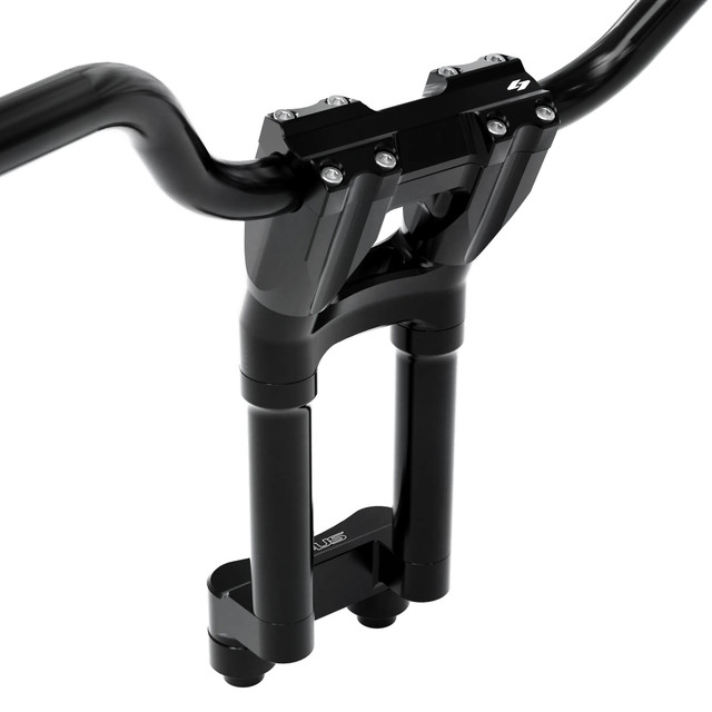 This setup bolts directly to your stock triple tree and relocates your risers so they will clear your gauge pod. (Some modification of the Nacelle is needed) The raptor plate and Kickback risers together offer a total of 3" of pullback which creates a very comfortable riding position.
