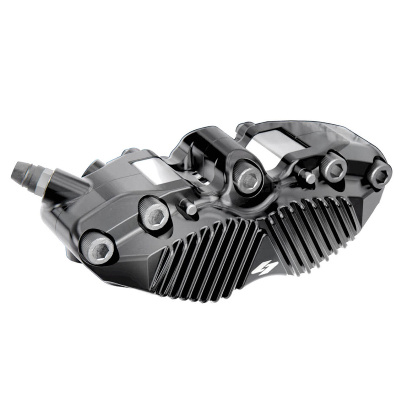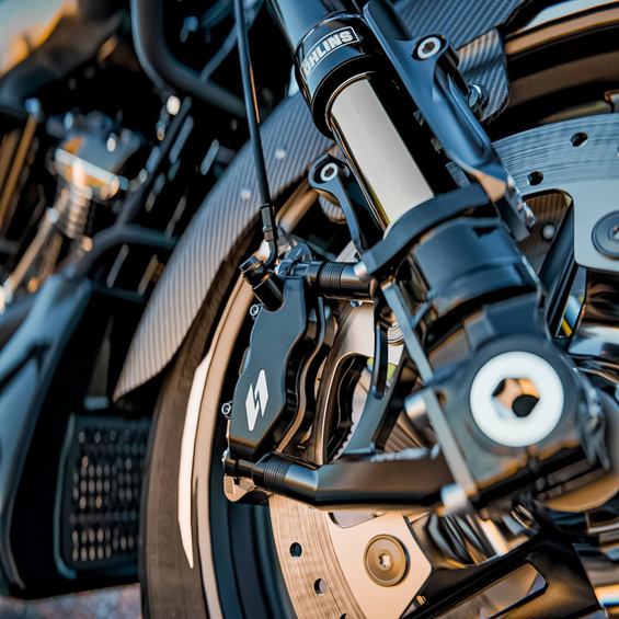Precision-engineered to bring race-proven braking performance to V-Twins, the Kraus RTX8 Brake Calipers deliver superior stopping power, control, and feel—whether you're carving through the canyons, pushing limits on the track, or dealing with the unexpected on city streets. Precision-machined from race-grade billet aluminum, our calipers minimize weight. Compared to an OEM H-D front caliper, our calipers are 27% lighter. You'll experience a noticeable improvement in lever feel and feedback. Comes standard with Kraus RT-S Street pads, with optional Kraus Performance and Race pad upgrades available.