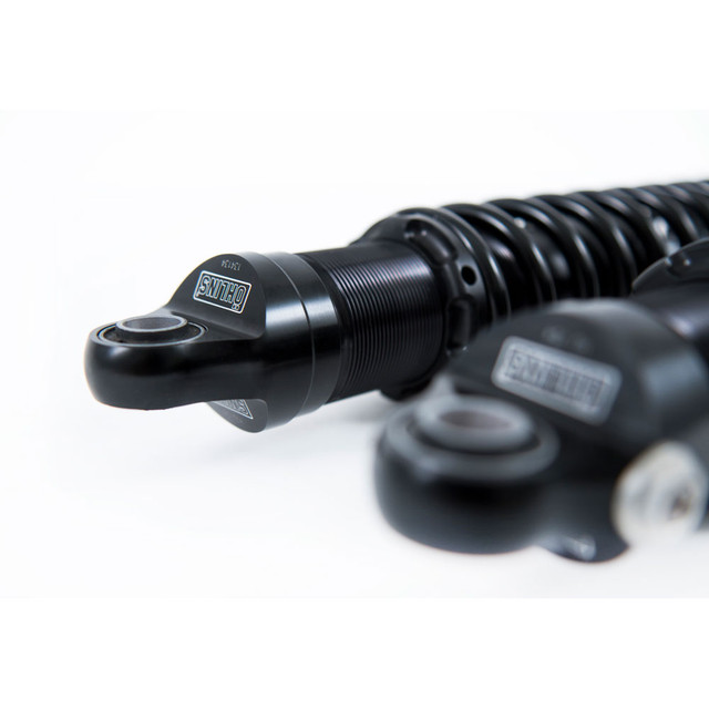 Ohlins HD 762 Shocks for Harley Dyna models are blacked out for a stealthy look. Features a 12" length that is adjustable. S36DR1L Type.